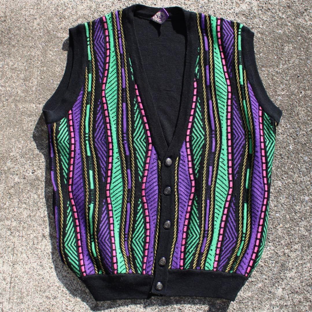 【Lサイズ】DIOMEDES-Ⅱ SPORTS 90's ネオンカラー 古着 カーディガンベスト