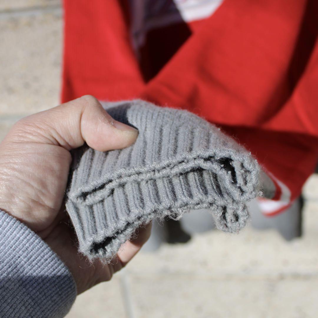アクリル100%なので、チクチクしない生地の大きめのサイズ感の1着です。